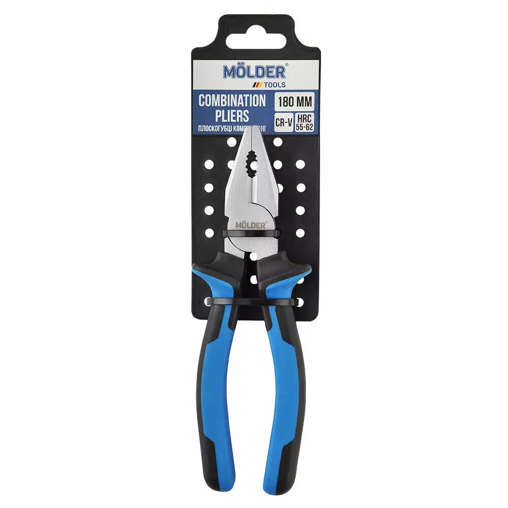 Плоскогубці комбіновані MOLDER 180мм, Cr-V, HRC 55-62, сатинове покриття, двок. ручка (60шт/ящ)