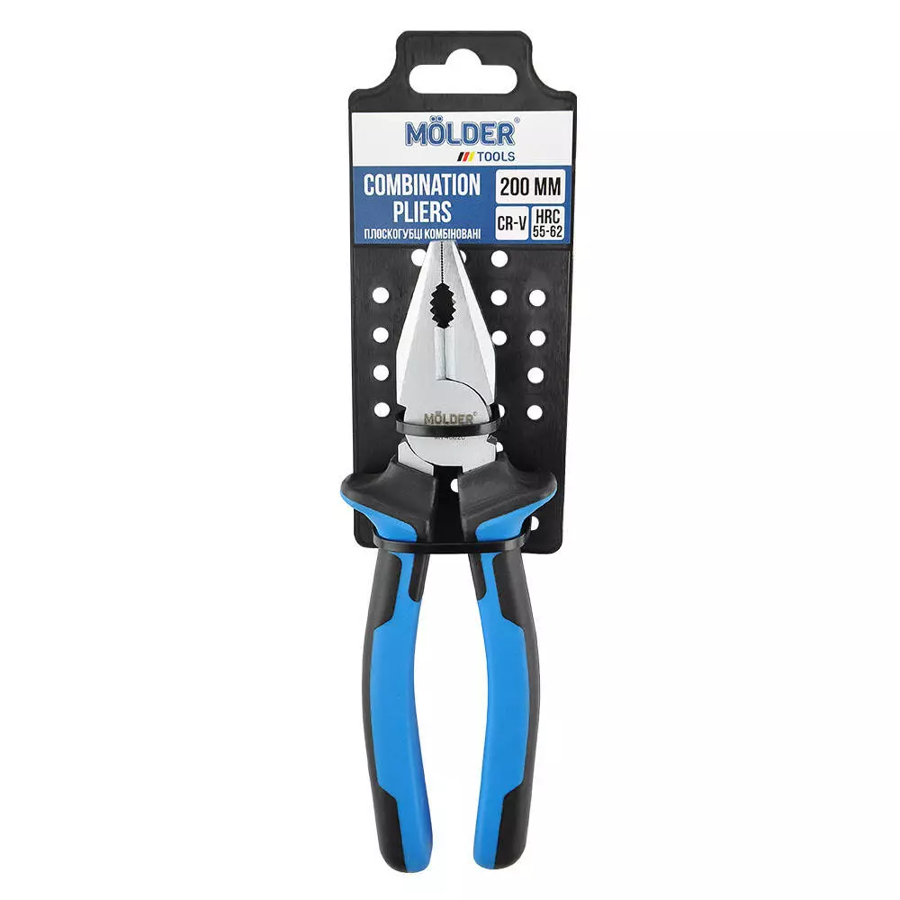 Плоскогубці комбіновані MOLDER 200мм, Cr-V, HRC 55-62, сатинове покриття, двок. ручка (48шт/ящ)