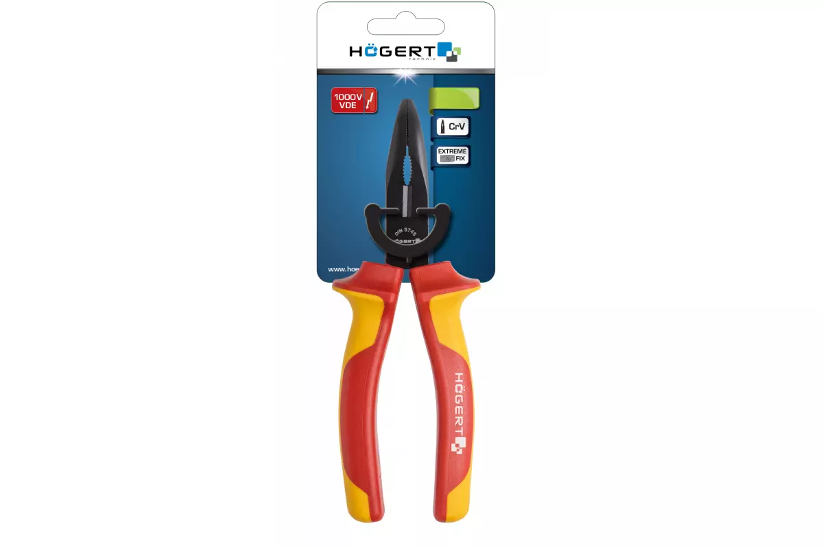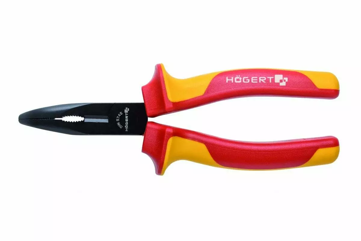 Плоскогубцы диэлектрические удлиненные с полукруглыми изогнутыми губками 200 мм, 1000 В (HT1P923)