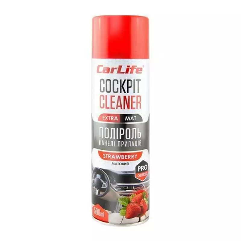Полироль для авто для пластика на панель приборов CarLife Cockpit Cleaner EXTRA MAT Клубника 500 мл (CF523)