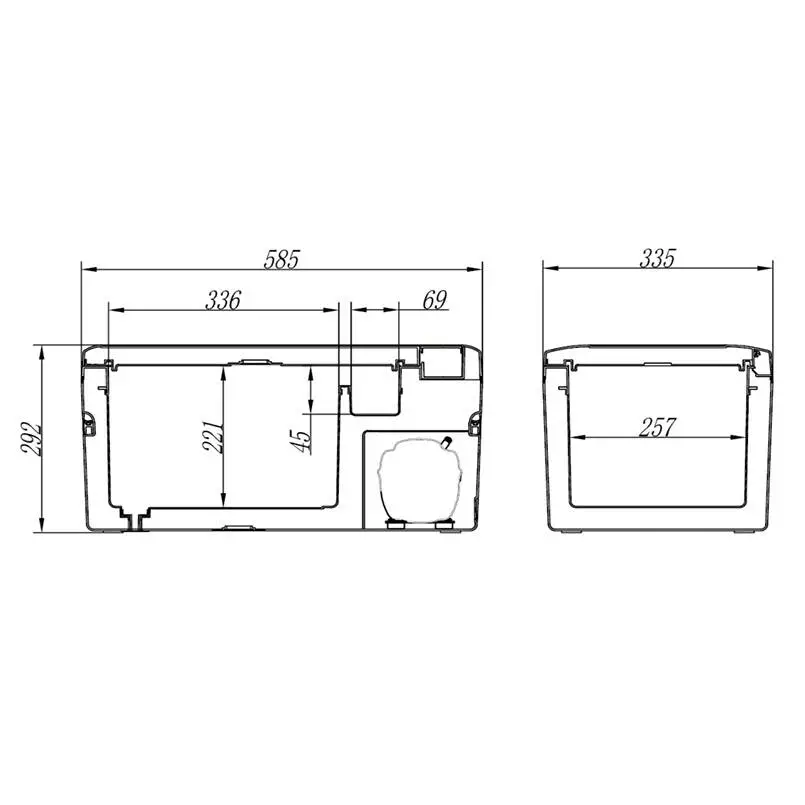 размеры: 1-я камера — 336x221x257 мм, 2-я камера — 69x45x257