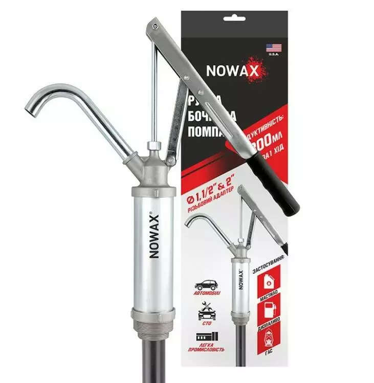 Ручна бочкова помпа важільного типу для мастила NOWAX пластиковий забірник (10шт/уп)
