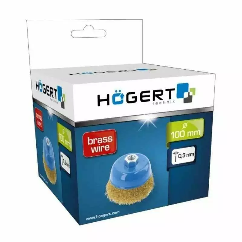 Щетка чашечная 100мм 12500об/мин Hogert прямая латунная для болгарки (HT7D732)