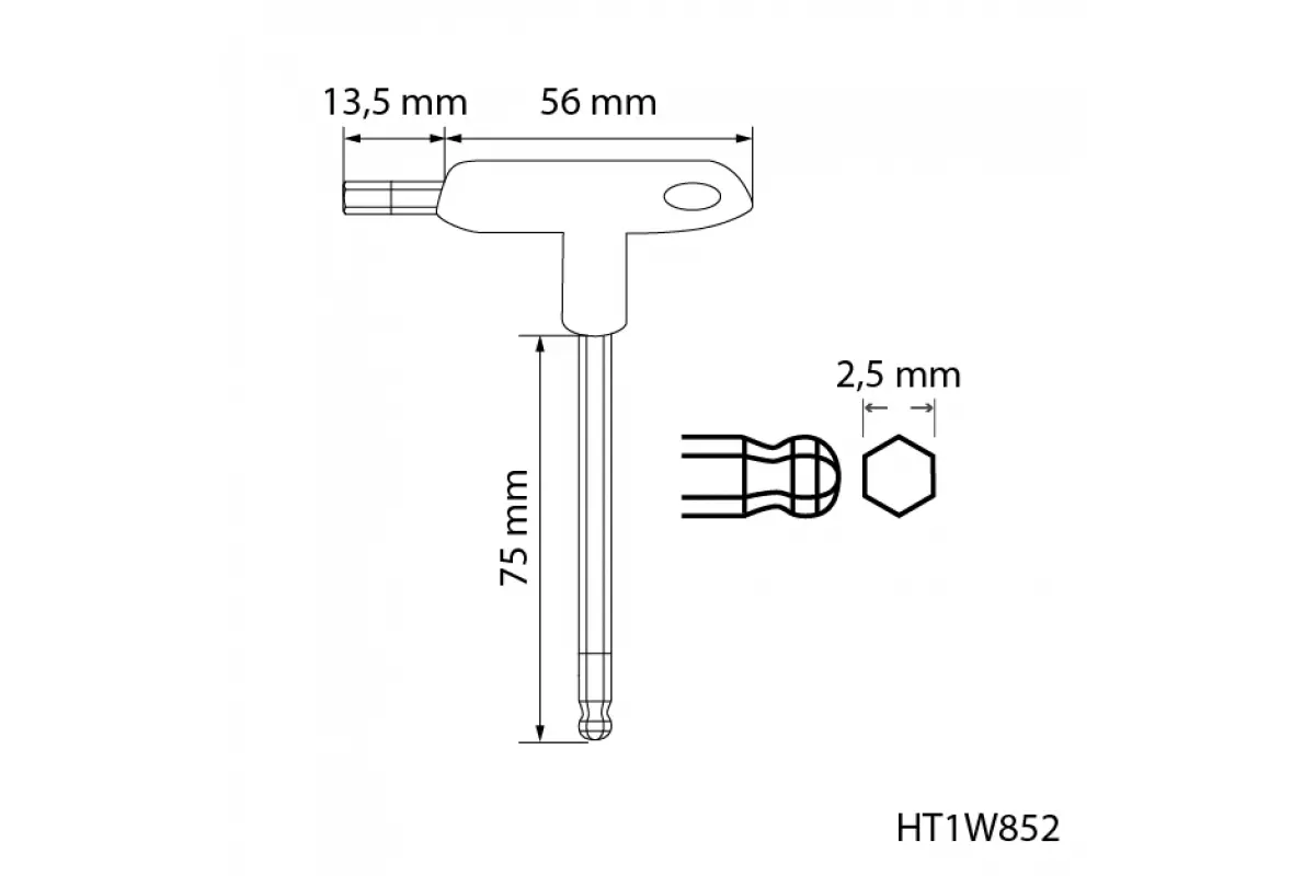 Шестигранный ключ типа "Т" с шаровым наконечником, длинный 2,5 мм (HT1W852)