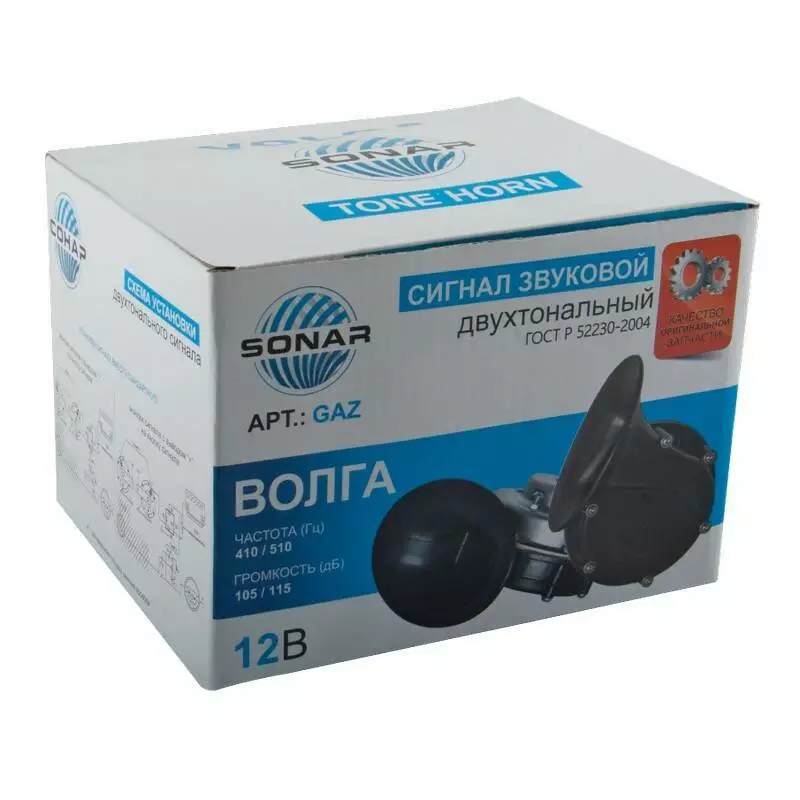 Сигнал автомобільний SONAR ВОЛГА, 12В, 410/510 Гц, 105/115 дБ