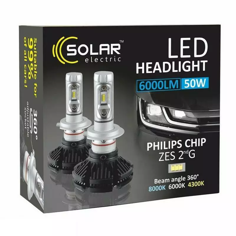 Это светодиодные лампы от бренда SOLAR, применяются для замены штатных галогенных ламп. По яркости света они сравнимы с ксеноном, но при этом конструкция более простая, с отсутствием источника пожароопасности. Установка достаточно проста, не требует навыков электрика, а размер соответствует стандартам посадочных мест в фаре.