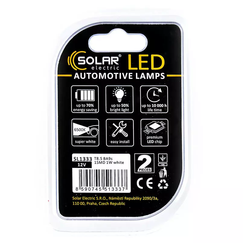 Лампочки SOLAR T8.5 BA9s 12V 1SMD 5730 white SL1333 (2 шт.) работают от напряжения бортовой сети 12 Вольт и универсально подходит для легковых автомобилей, микроавтобусов, внедорожников, а также мотоциклов. Корпус лампы выполнен из высококачественных материалов, благодаря чему отличается великолепной устойчивостью к вибрациям или ударам, а также обладает великолепной теплопроводностью и обеспечивает эффективное охлаждение диодов.