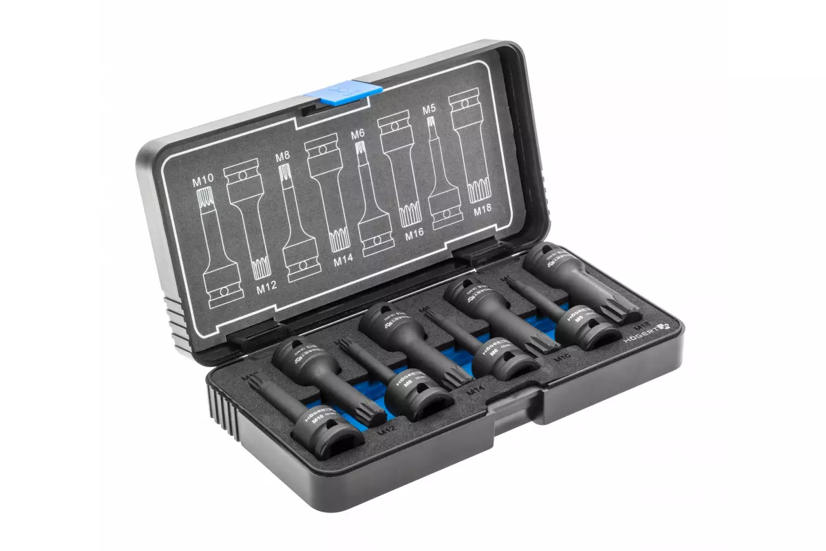 Торцевые головки, ударные spline, 8 шт.: M5, M6, M8, M10, M12, M14,