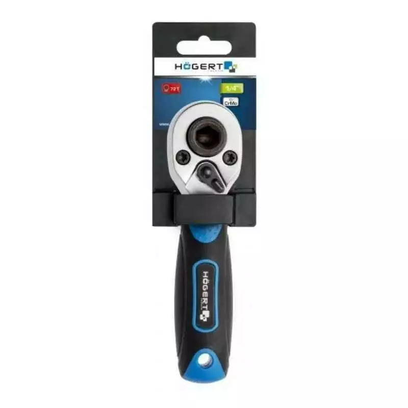 Трещотка 1/4" 72 зубца 150мм CrV CrMo Hogert короткая для насадок и бит (HT1R391)