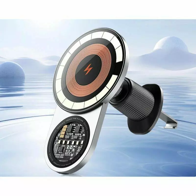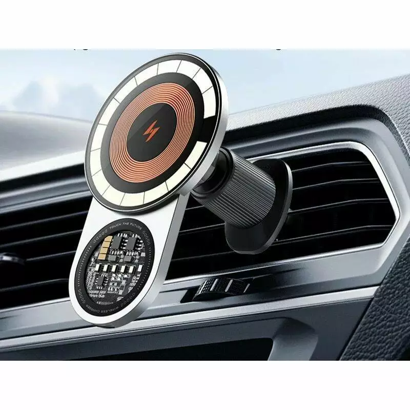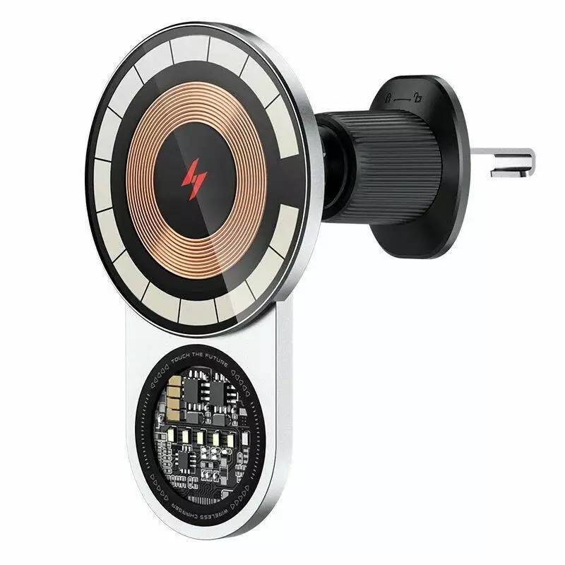 Встроенная беспроводная зарядка позволяет поддерживать заряд смартфона без лишних кабелей. Это особенно удобно для устройств, которые поддерживают стандарт Qi. Механический зажим надежно фиксирует телефон, не оставляя царапин на корпусе.