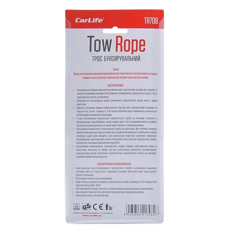 буксировочный 3 т 4 м в блистере CARLIFE (TR708).