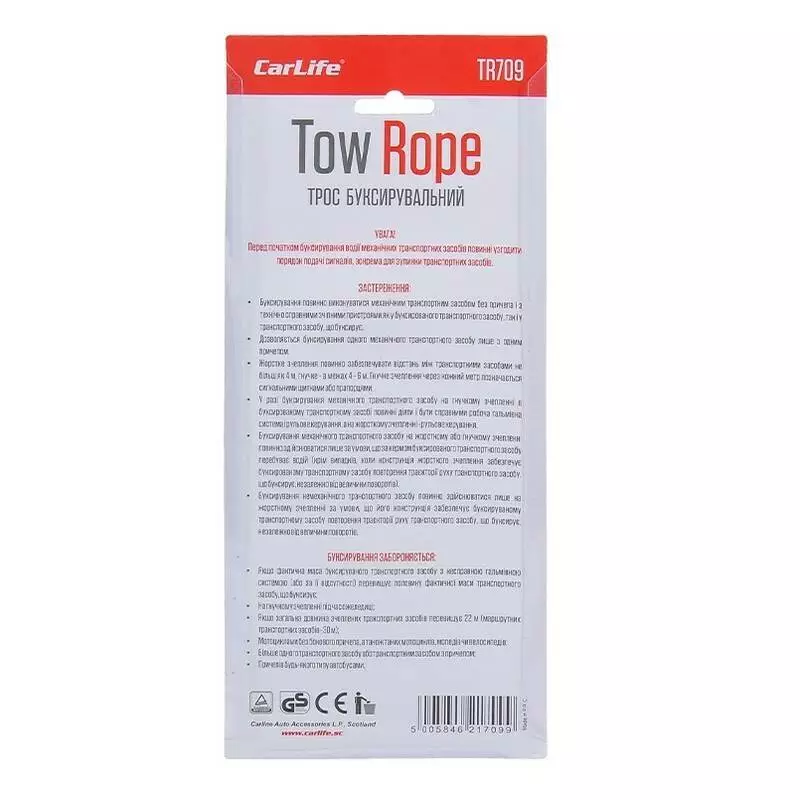 Для решение таких задач идеально подойдет буксировочный трос CARLIFE TR709, который обладает такими характеристиками: