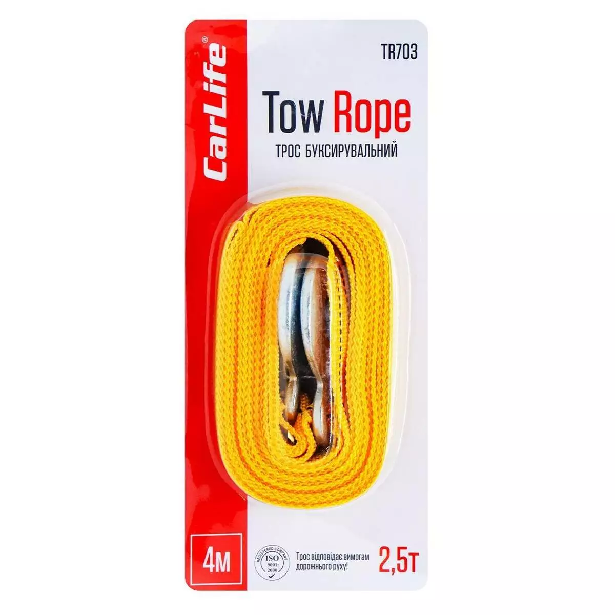 Для решение таких задач идеально подойдет Трос буксировочный CARLIFE 2,5 т 4 м блистер TR703 который обладает такими характеристикам: