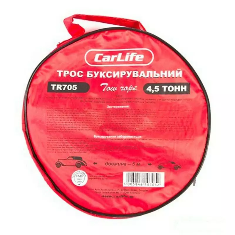 Для решение таких задач идеально подойдет Трос буксировочный CARLIFE 4,5 т 5 м TR705 который обладает такими характеристикам:
