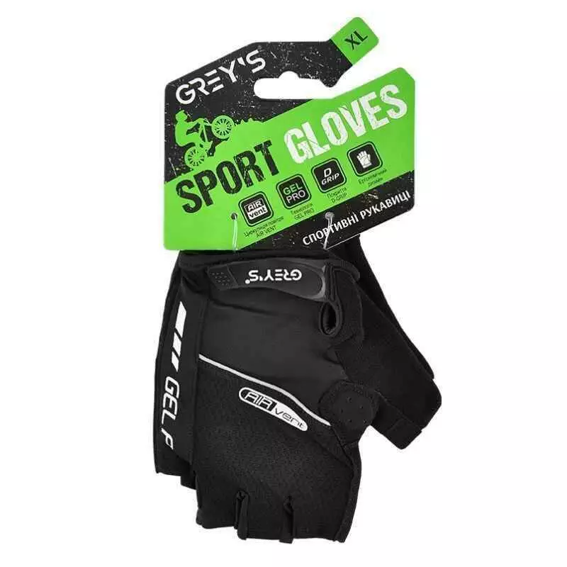 Велоперчатки летние унисекс Grey's с застежкой и вентиляцией открытые с коротким пальцем размер XL черные (GR18114)