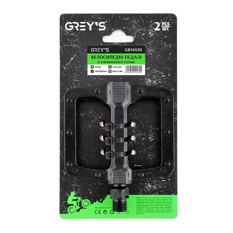 Велосипедні педалі GREY'S із алюмінієвого сплаву, чорні, 1 пара