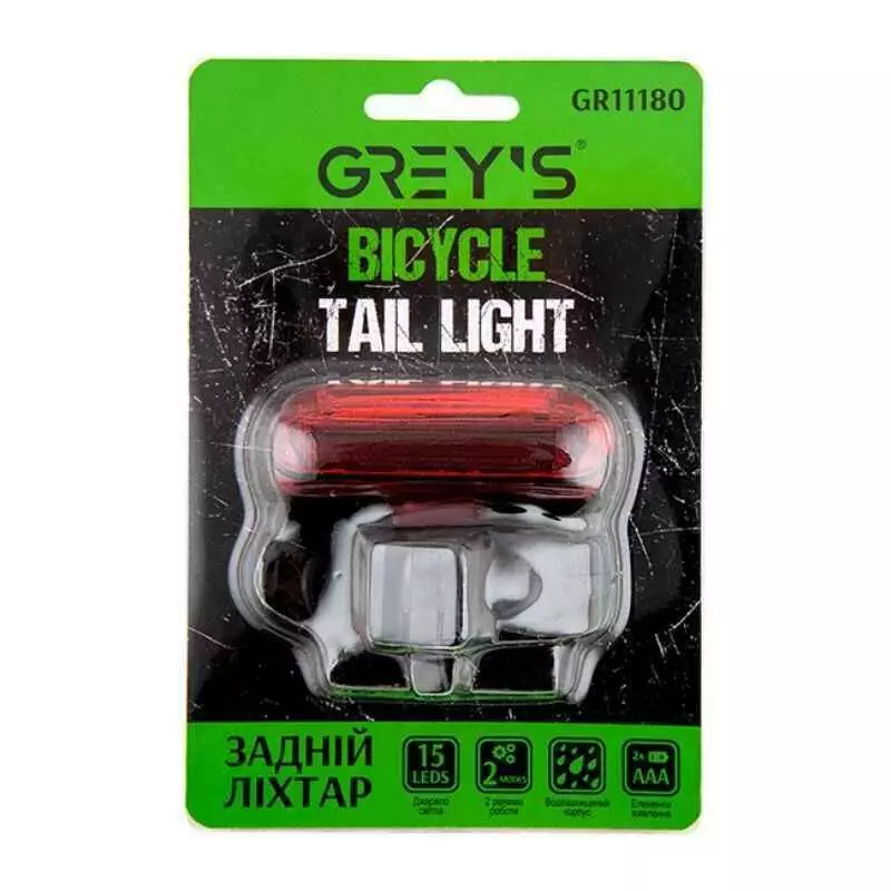 Задний фонарь на велосипед 15 светодиодов Grey's 2хAAA влагостойкий 2 режима до 5 часов работы (GR11180)