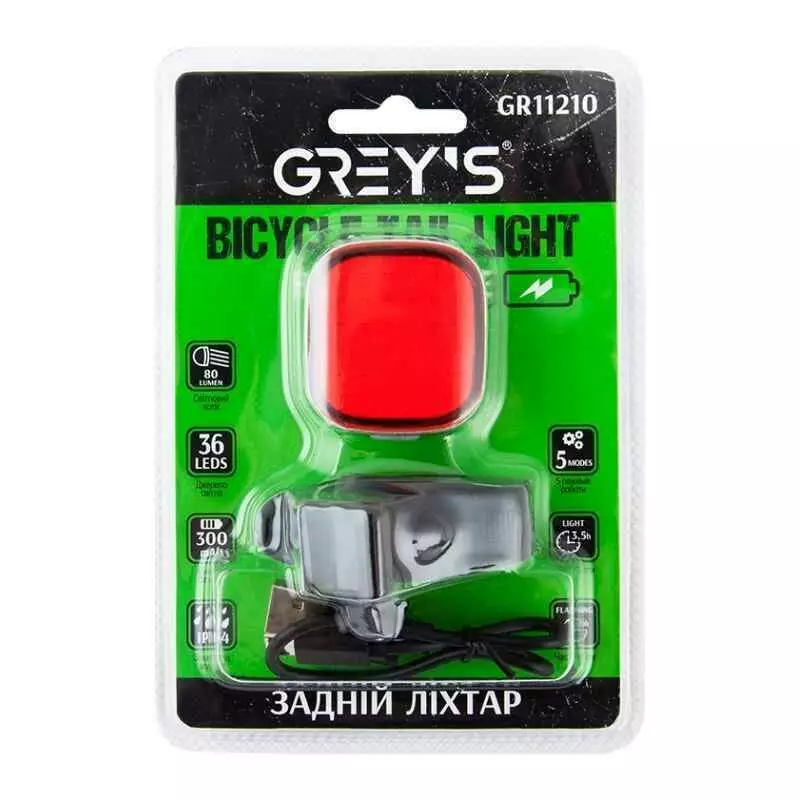 Задний фонарь на велосипед 36 светодиодов 80Lm Grey's 300mAh IPX4 5 режима до 3 часов работы (GR11210)