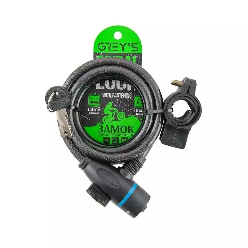 Тросовый замок Grey's GR51015 обеспечивает надежную защиту вашего велосипеда от кражи благодаря прочному материалу и надежному замку.