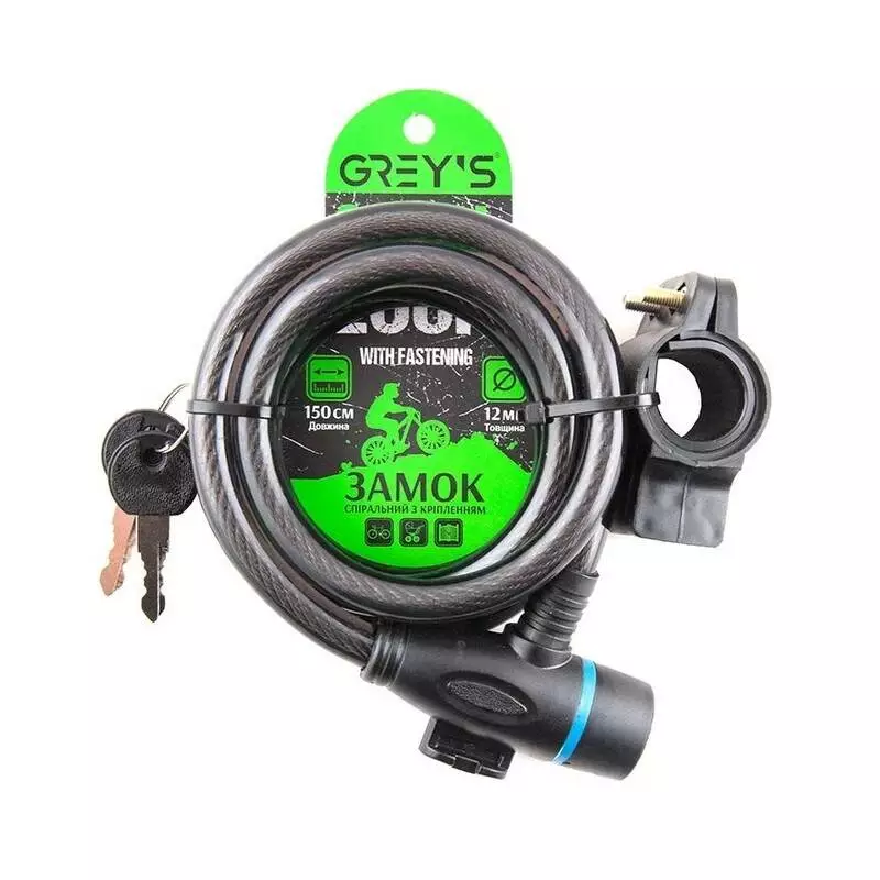 Велосипедный замок 12*1500мм Grey's велозамок тросовый с 2