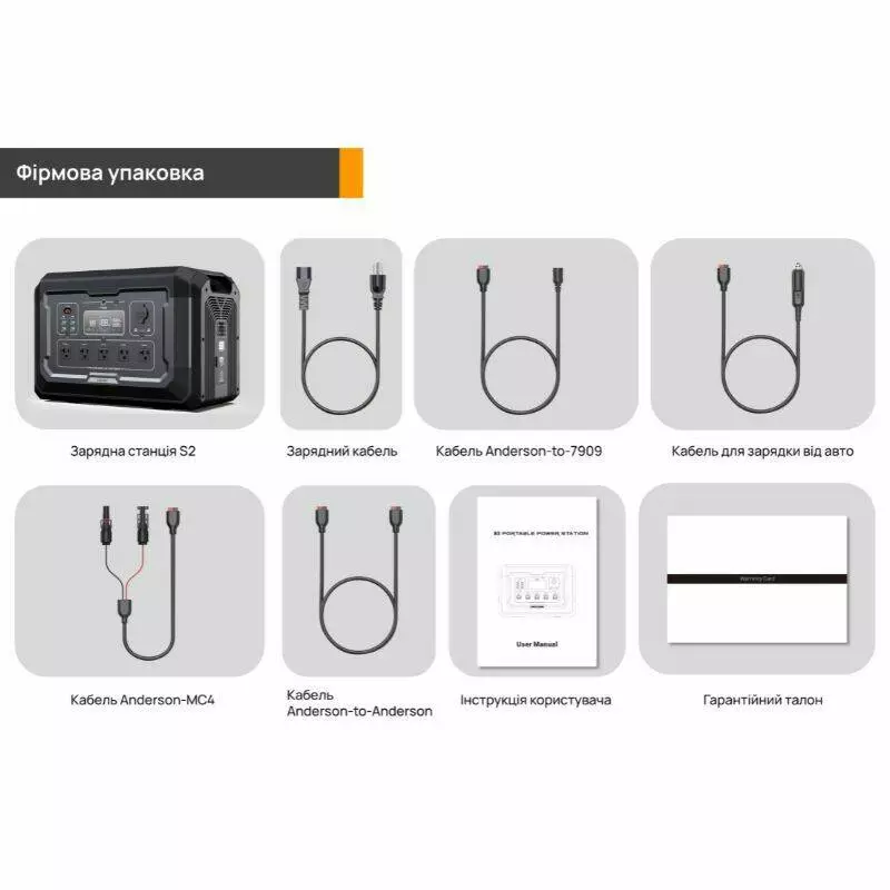 • Інтерфейси підключення: Розетка, Гніздо прикурювача, Сонячна панель, Anderson