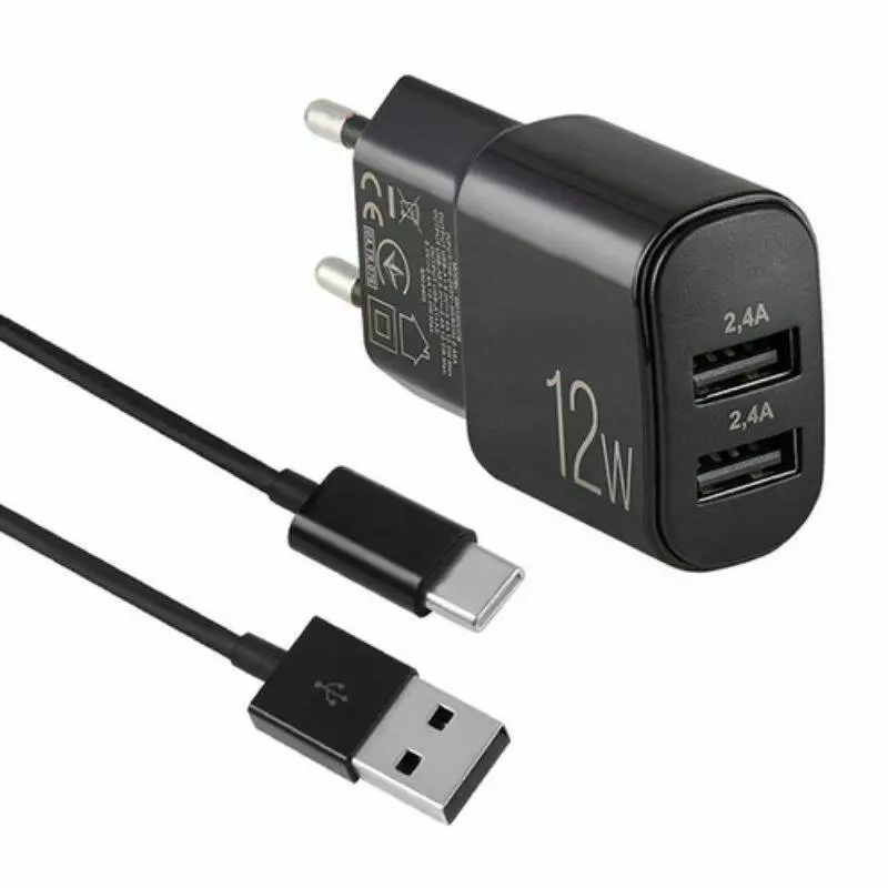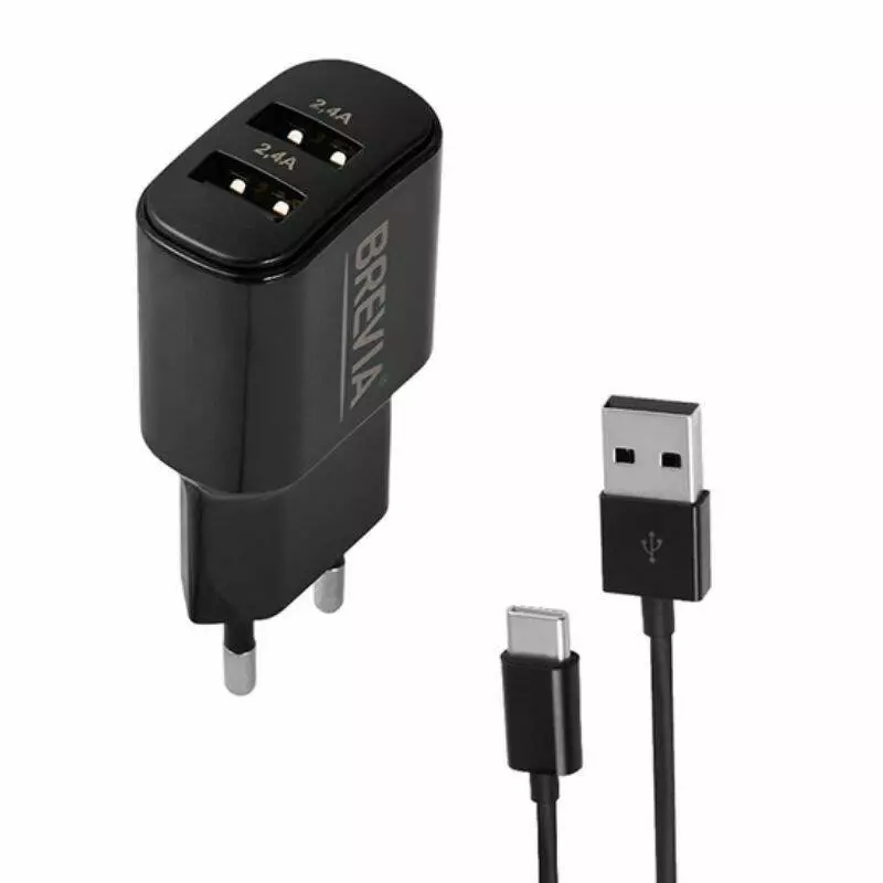 Зарядний пристрій BREVIA ePower 12W 2xUSB-A + Cable USB-A to USB-C 1m (40шт.)